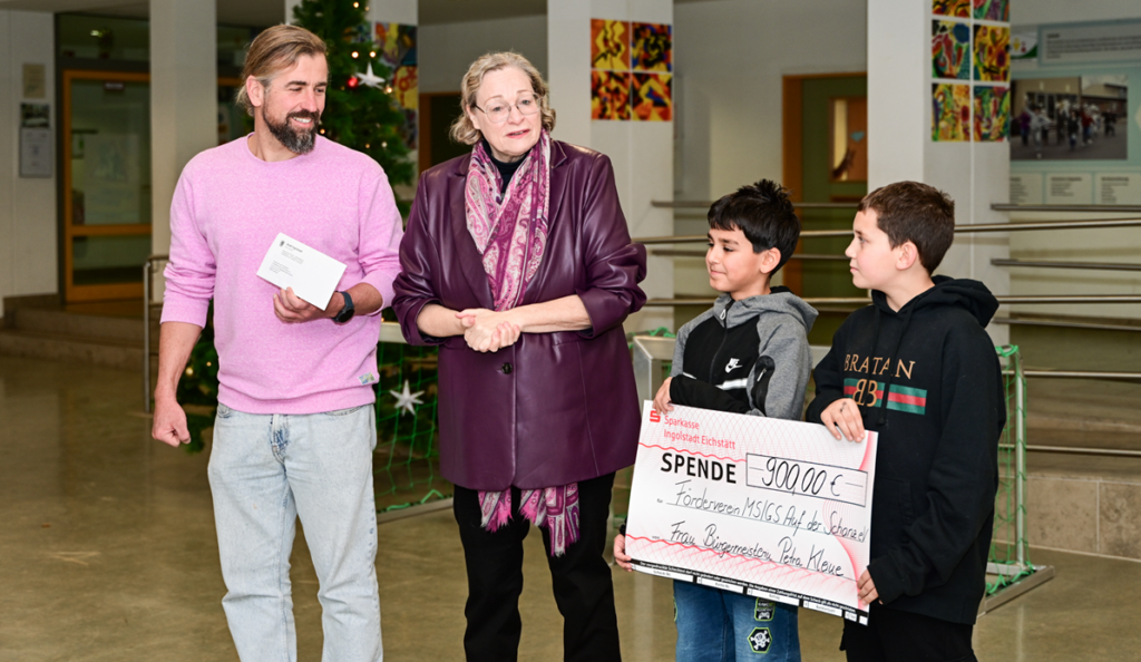 Bereits am 05.12.2025 gab es für unsere Schülerinnen und Schüler eine vorweihnachtliche Überraschung: Frau Petra Kleine, 3. Bürgermeisterin der Stadt Ingolstadt, überreichte dem Förderverein der Grund- und Mittelschule Auf der Schanz zwei brandneue Fußballtore für den Pausenhof.